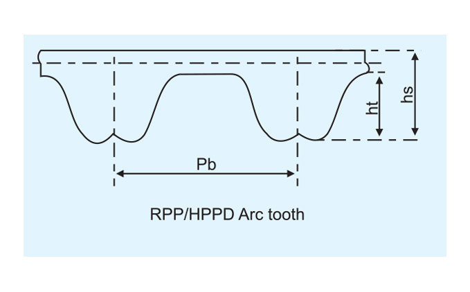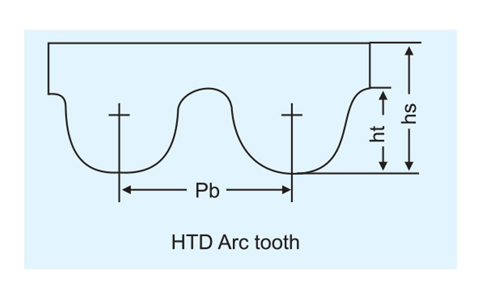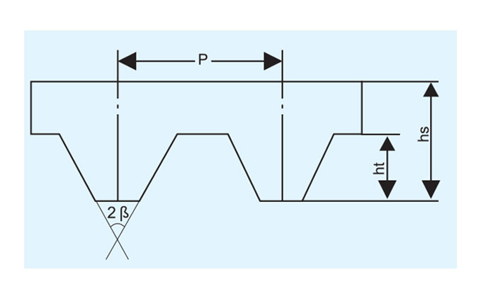 | Type | Pb(Pitch) | Teeth No. | P(Pitch length) | hs(Tooth Height) | hs(Belt thickness) | 2β0Angel |