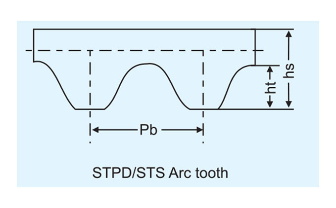 | Tooth Code | Type | Pb(Pitch) | Teeth No. | P(Pitch length) | hs(Tooth Height) | hs(Belt thickness) |